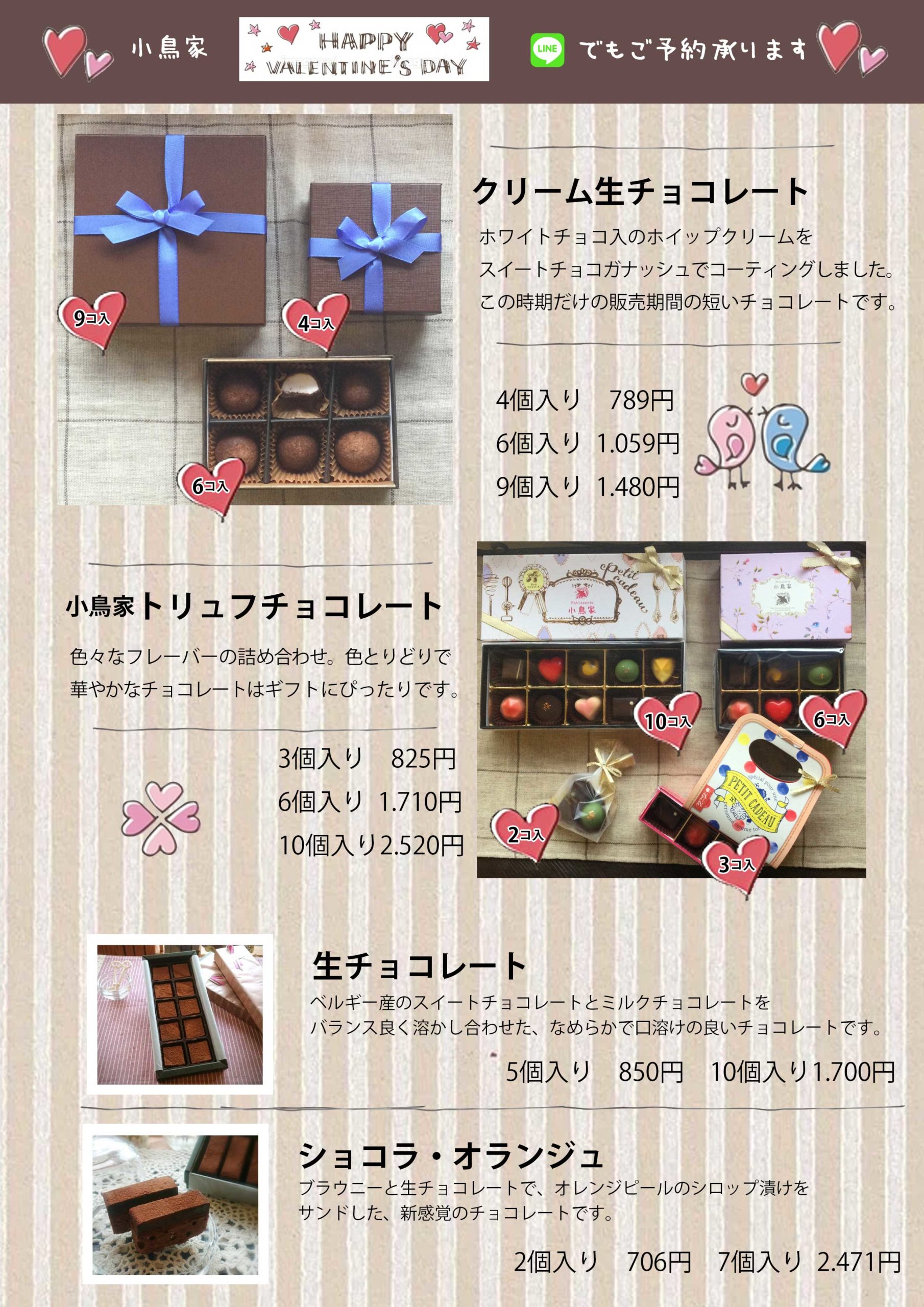 ☆小鳥家のバレンタイン チョコレート商品のご案内です