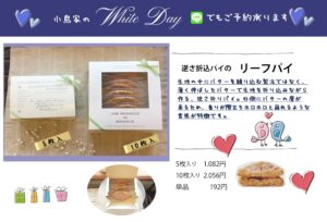 他にも、ホワイトデーのお返しにピッタリのお菓子を、多数取り揃えております。